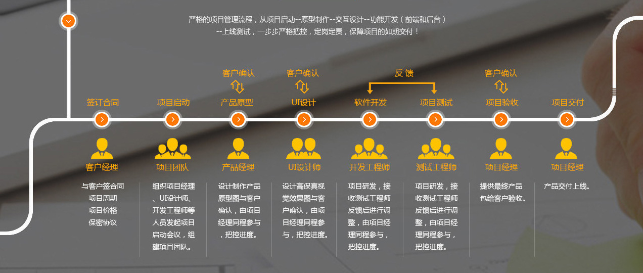 強大的設計及技術團隊 · 擁有成功的合作經(jīng)驗 · 標準化作業(yè)體系 · 一對一百分百服務 · 獨享的顧問式貼身服務